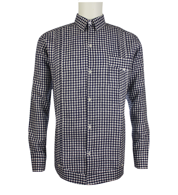 Guayabera Santa Fé lino Irlandés azul cuadros pequeños T-40